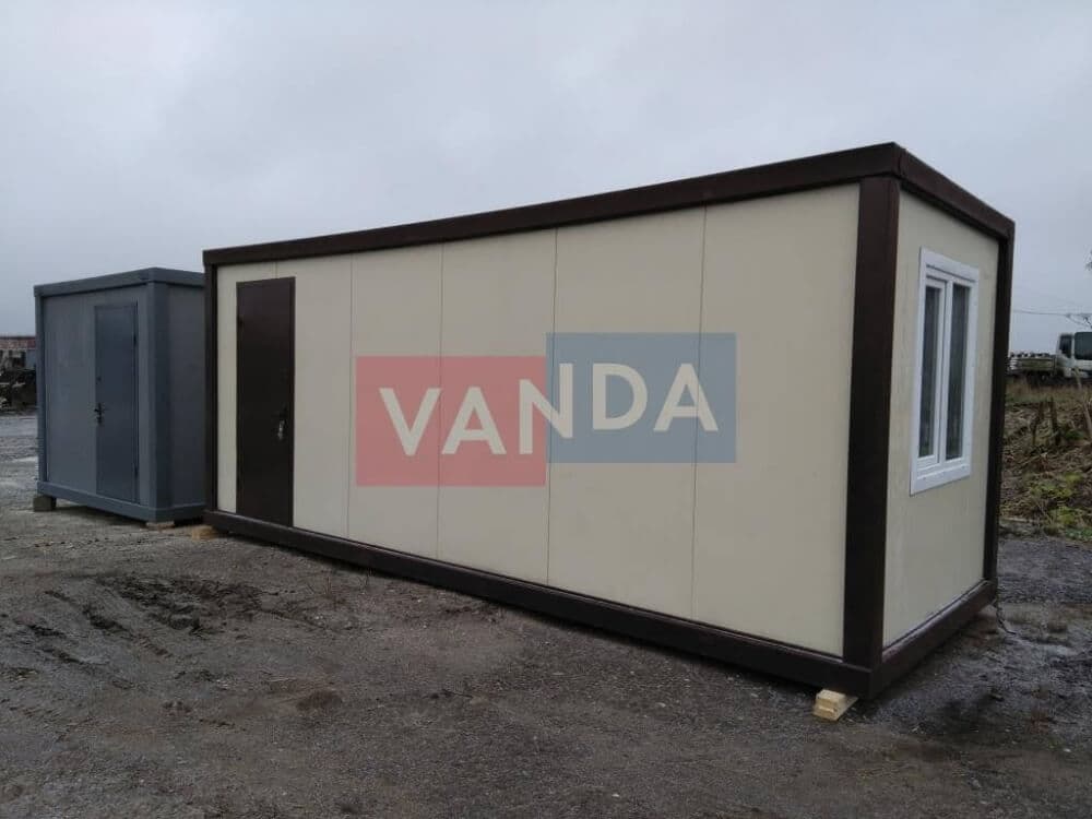 Контейнер состоит из металлического сварного основания. Стены изготовлены из сэндвич-панелей с прокладкой утеплителя. Крыша покрыта крашенным холоднокатаным металлом 1,2 мм. Помещение обустроено пароизоляцией при помощи технической пленки, которая проложена на полу и потолке. Внутренняя облицовка потолка выполнена из ПВХ-панелей, пол – из шпунтованной доски. Вход в помещение оборудован запирающейся металлической дверью.