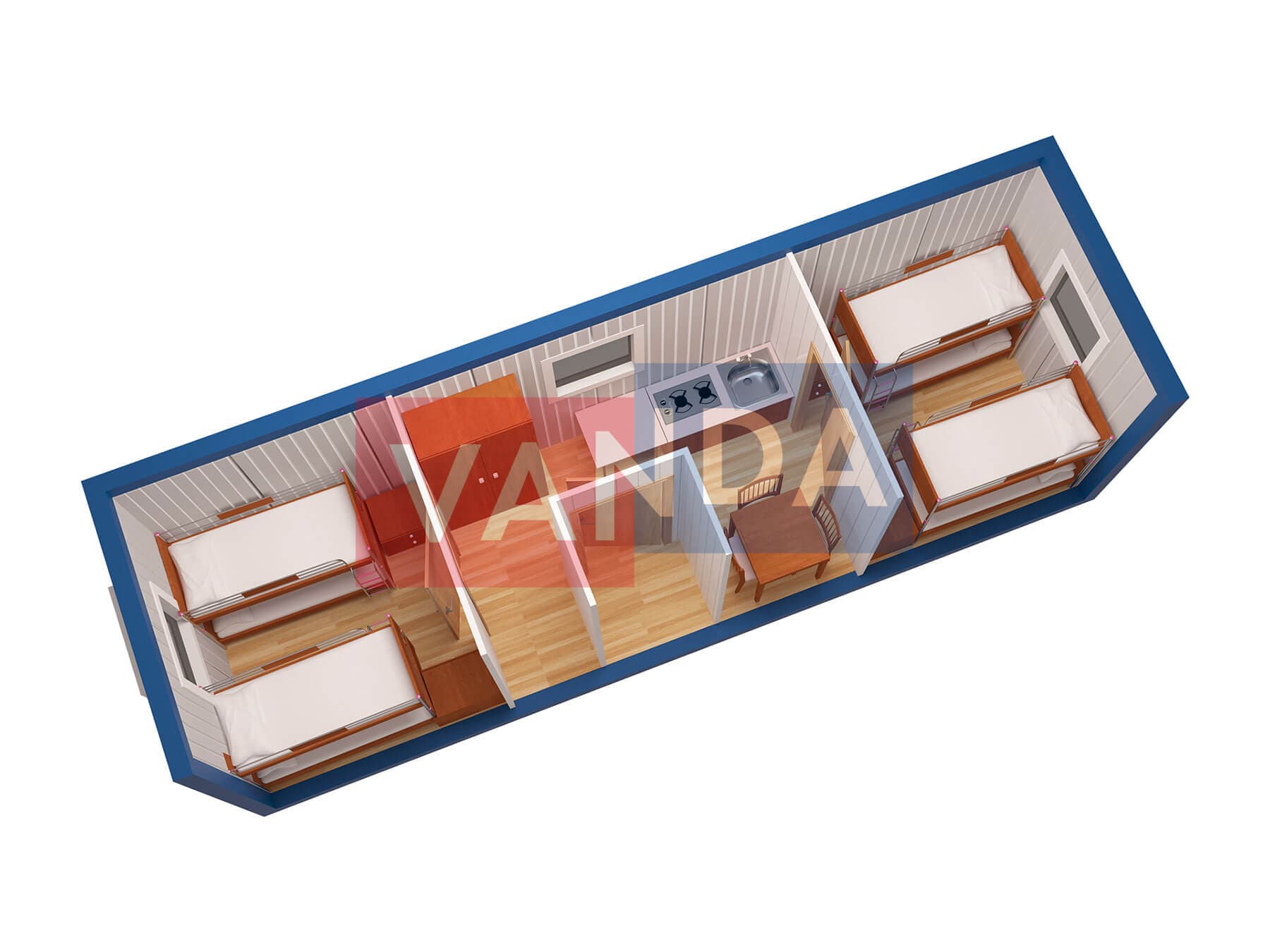 Металлическая бытовка с кухней в тамбуре 5,85 x 2,4 - Оргалит ДВП